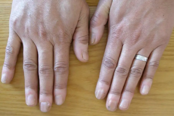 手部白癜风主要表现为手指或手背的色素减退,类似牛奶样的色素减退斑。白癜风发生在手上,主要是由于手部是
